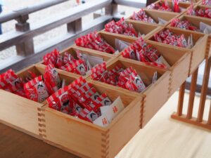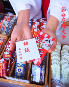 節分厄除大祭当日、本殿左側テントにて「福銭・福豆」の授与を行います。