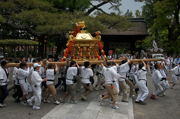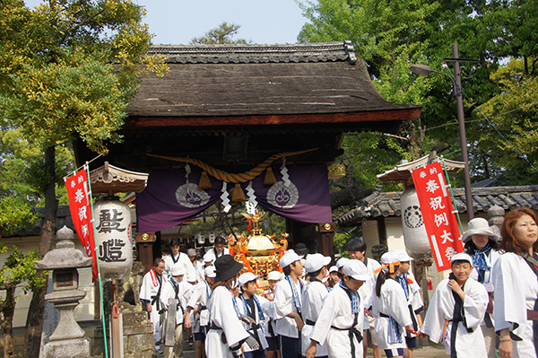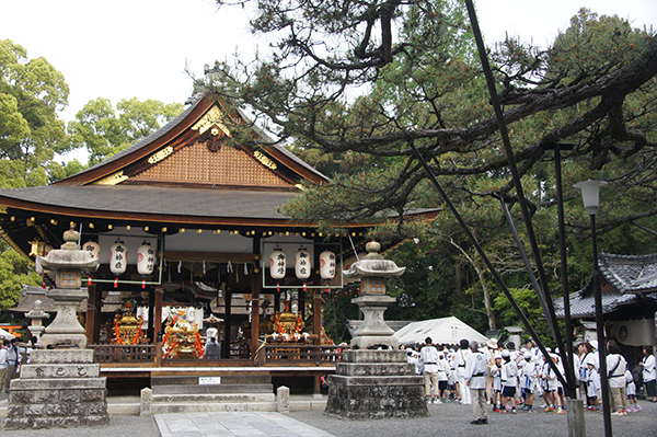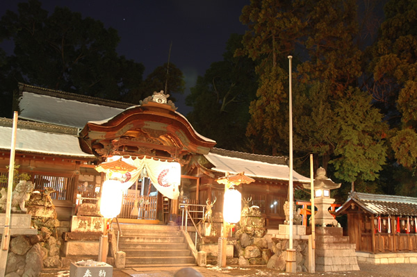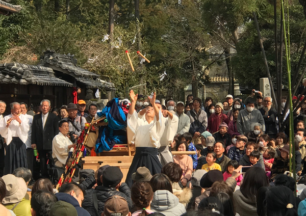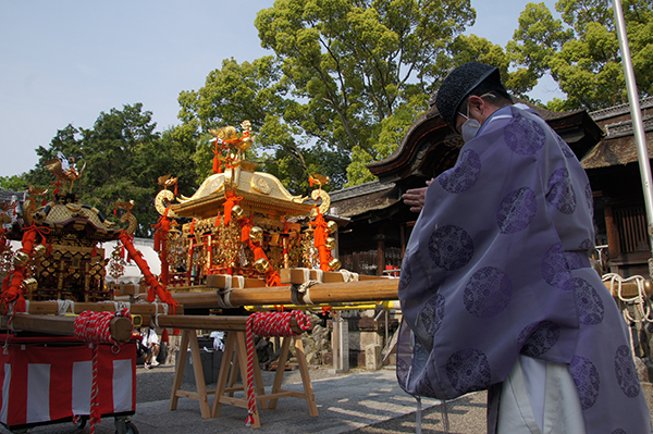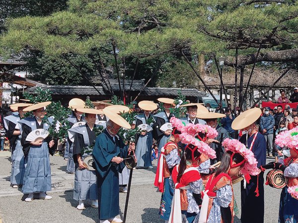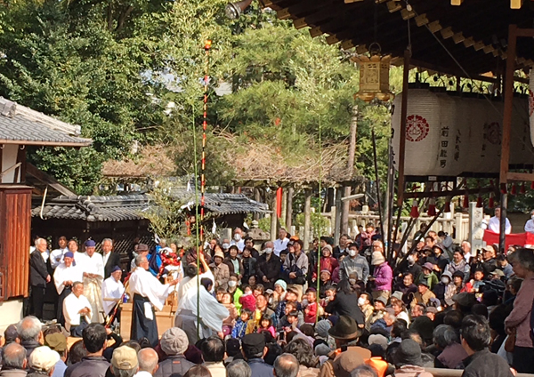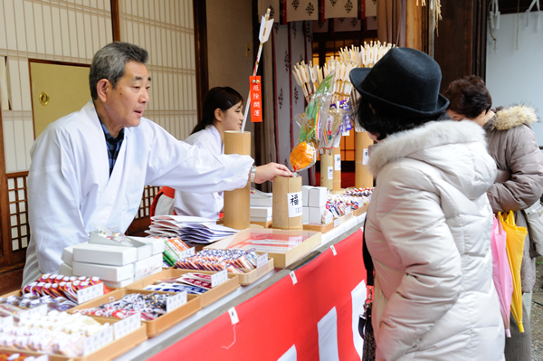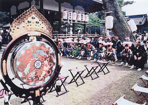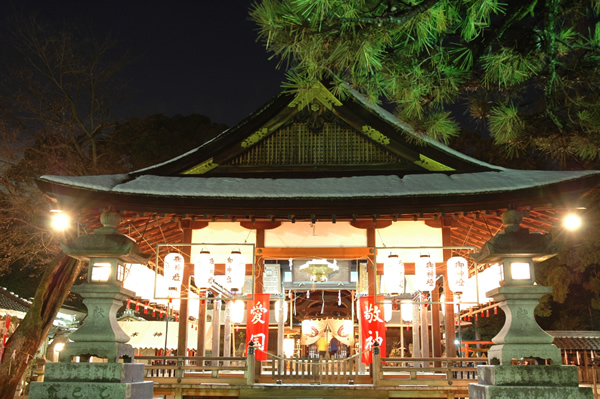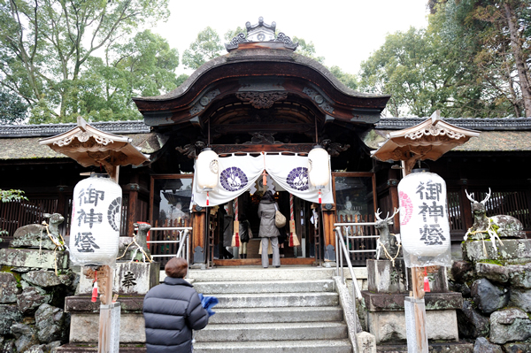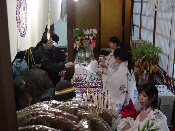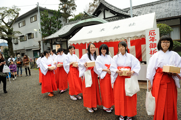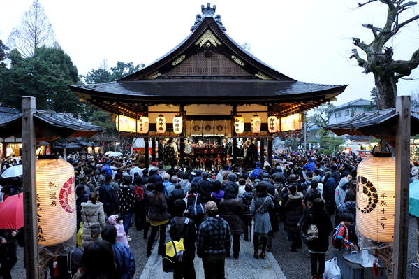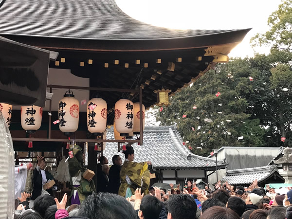 笛や太鼓の雅楽の音色、巫女による神楽の舞で神聖な空気が流れる拝殿。