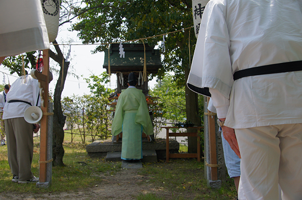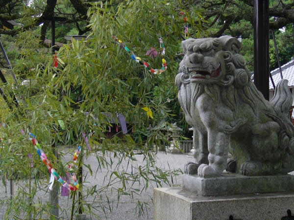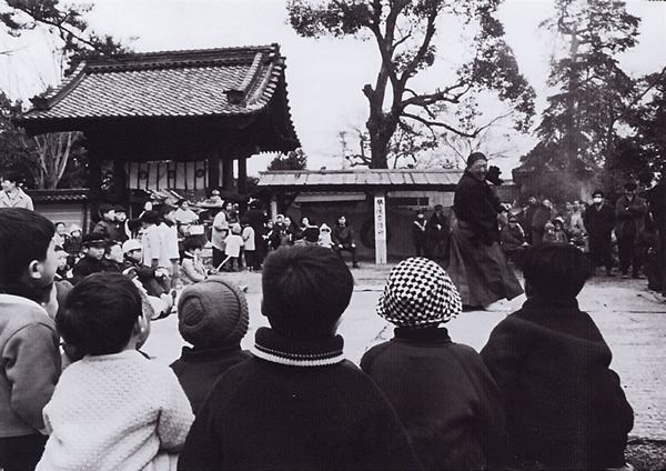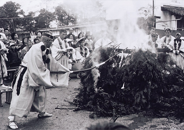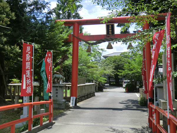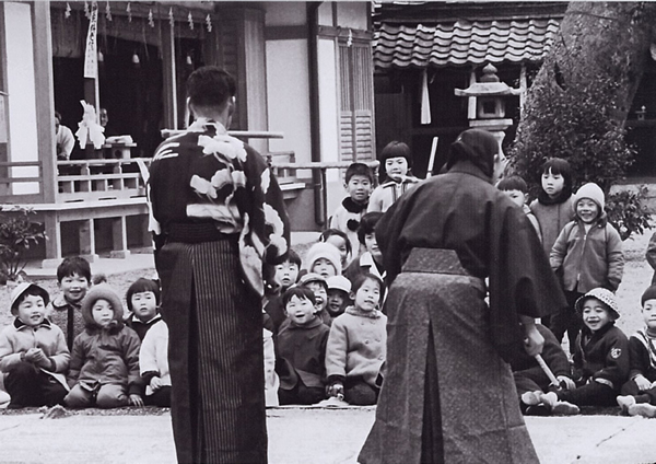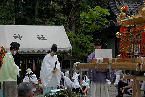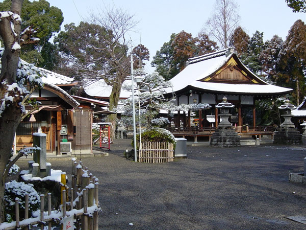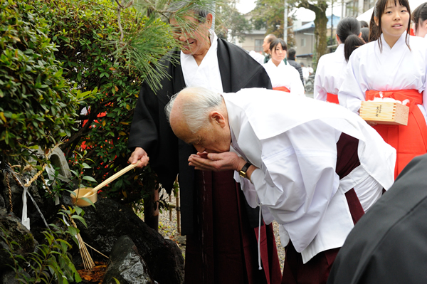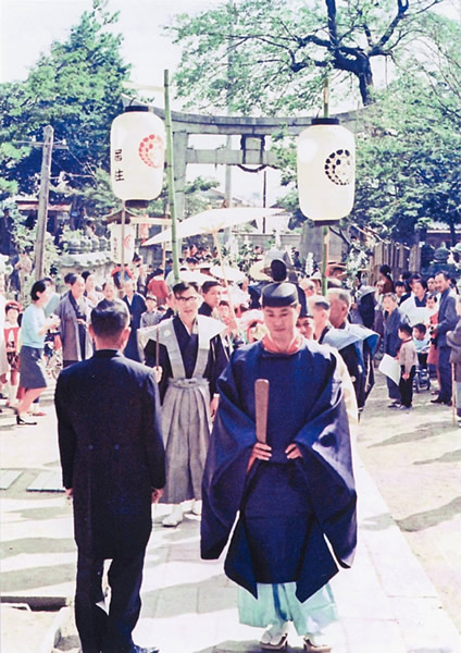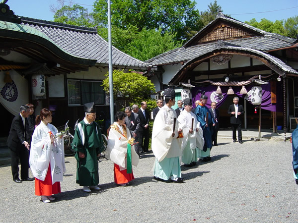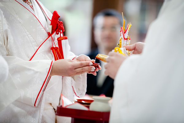 由緒正しい立木神社の境内に似合う紋付き袴、白無垢姿の新郎新婦。